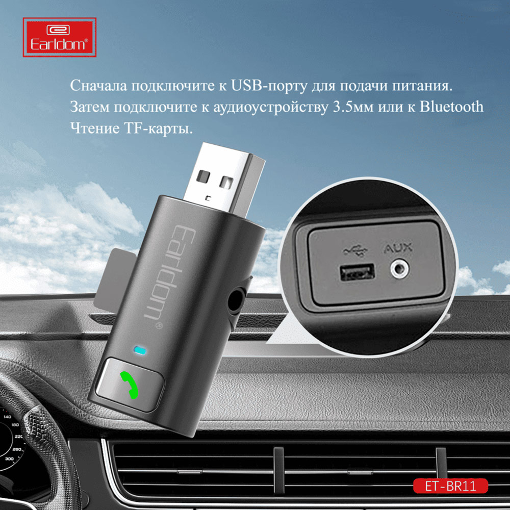 دانگل بلوتوث USB ارلدام مدل BR11 مشکل تمامی کسانی که ضبطهای قدیمی داخل خودروی یا اسپیکرهای موجود در منزل، فاقد بلوتوث دارند را به راحتی حل نموده، به طوریکه که دیگر نیازی به تعویض ضبط ماشین و صرف هزینههای زیاد برای تهیه ضبط صوت مدرنتر نخواهد بود. گیرنده بیسیم موزیک ماشین با اتصال به پورت USB جهت تغذیه برق و پورت 3.5 میلی متری (AUX) متصل شده و ضبط صوت، هدفون یا اسپیکر سیمی را به یک دستگاه بلوتوثی تبدیل میکند.