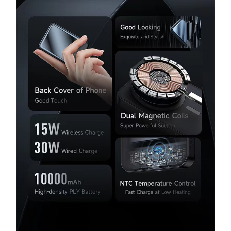 پاوربانک مک دودو مدل MC-593 ظرفیت 10000 میلی آمپر ساعت دارای دو خروجی است که شامل یک پورت Type-c با توان 30 وات و جایگاه شارژ وایرلس با توان 15 وات می شود که پورت Type-C آن به صورت ورودی خروجی عمل میکند. برای استفاده از قابلیت شارژ وایرلس، تلفن همراه شما نیز باید قادر به پشتیبانی از این حالت باشد. این پاوربانک ظرفیت 10 هزار میلی آمپری داشته و علاوه بر تبلت و گوشی تلفن همراه، آن را به محصولی مناسب برای شارژ هندزفری و ساعت هوشمند شما تبدیل می کند. این پاوربانک دارای گواهیهای FC و CE بوده که نشان از کیفیت بالای آن دارد.
