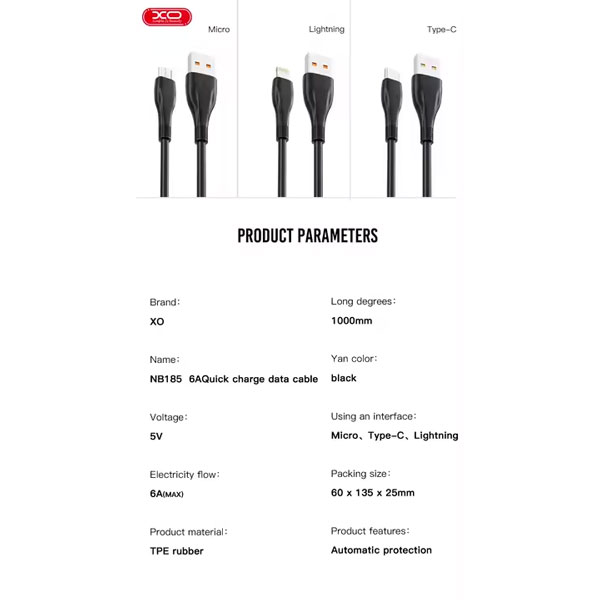 کابل ایکساو مدل XO NB185 لایتنینگ
